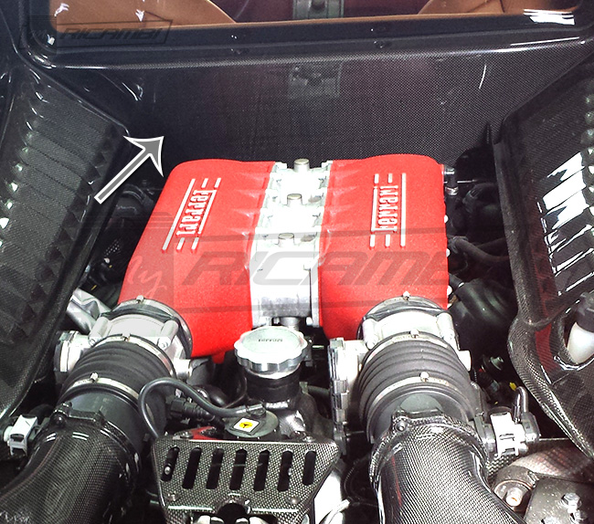 The UnderScreen Panel (also called the Rear Underscreen Shield) is the panel going right below the cockpit glass in the engine compartment, and this part is are made using the exact same quality carbon fiber and weave as used by Ferrari, which will allow you to keep the OEM look on your Ferrari 458 at a fraction of the cost of the Ferrari OEM part.