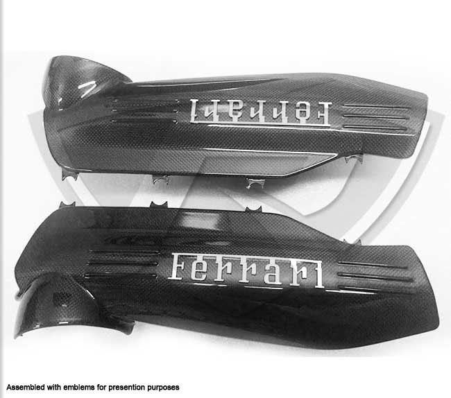 THIS IS AN AFTERMARKET CARBON FIBER PART. Included are two (2) FERRARI OEM N 220354 (or 220355 or 266777 or 266499)