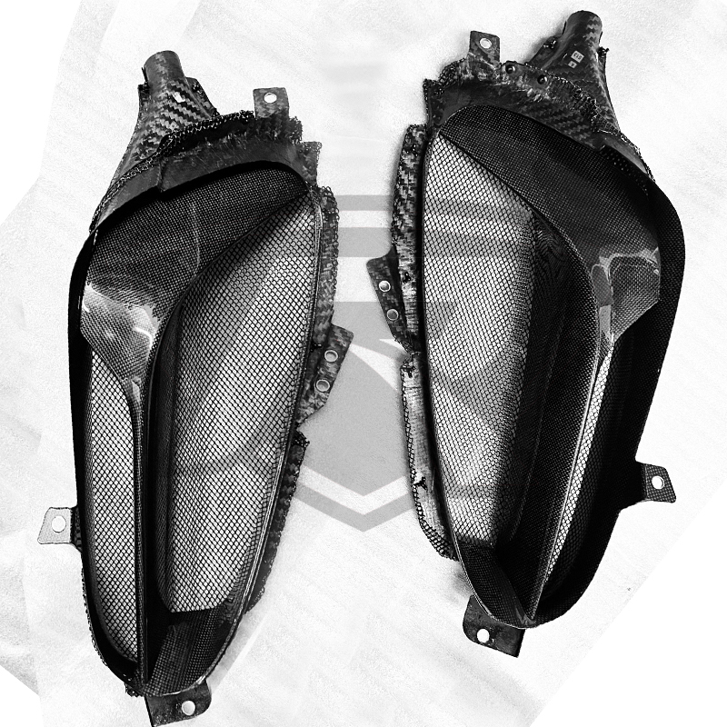 These Carbon Fiber Side Air Intakes are made to fit Ferrari SF90 Stradale and SF90 Spider. These are replacement parts and ithey replace the plastic OEM parts..